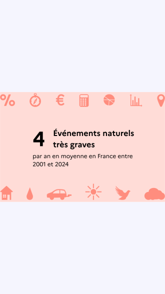 De multiples aléas naturels exposent la France à des évènements potentiellement dangereux ou dommageables pour les populations et les activités économiques : inondations, submersions marines, tempêtes et cyclones, séismes, mouvements de terrain, feux de forêt et éruptions volcaniques. Entre 1997 et 2017, en moyenne, 3,6 événements naturels très graves (ayant fait plus de 10 morts ou plus de 30 millions d’euros (M€) de dommages matériels) se sont produits chaque année, contre seulement 1 entre 1950 et 1996. Les 123 évènements recensés sur l’ensemble de la période ont provoqué au moins 10 morts ou 30 M€ de dommages matériels. Près des deux tiers de ces événements sont des inondations.